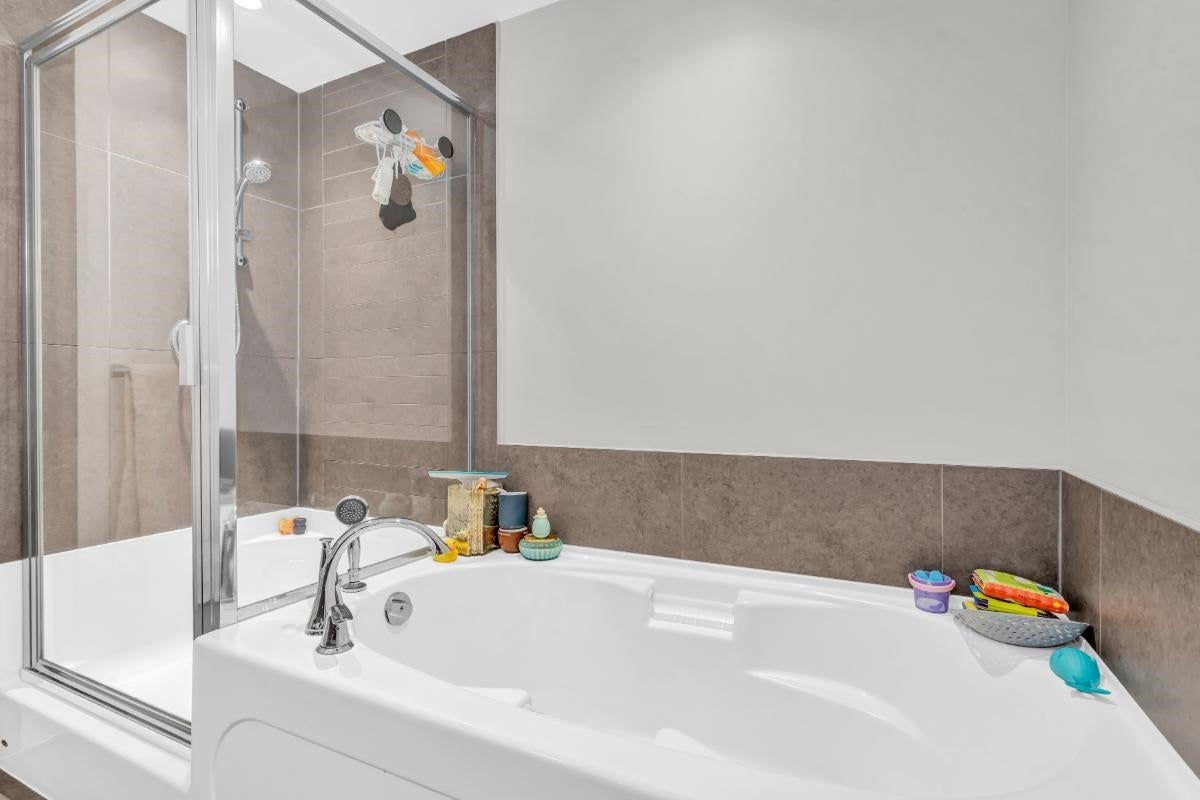 Step inside and feel instantly at home in the bright and airy open-concept living space, featuring oversized windows and a sunny south-facing exposure. The well-designed floor plan offers maximum privacy with bedrooms on opposite sides—perfect for families, roommates, or hosting guests. The spacious primary suite includes his and hers closets and a luxurious ensuite bathroom complete with double vanity, soaker tub, and separate glass-enclosed shower—your own private retreat.