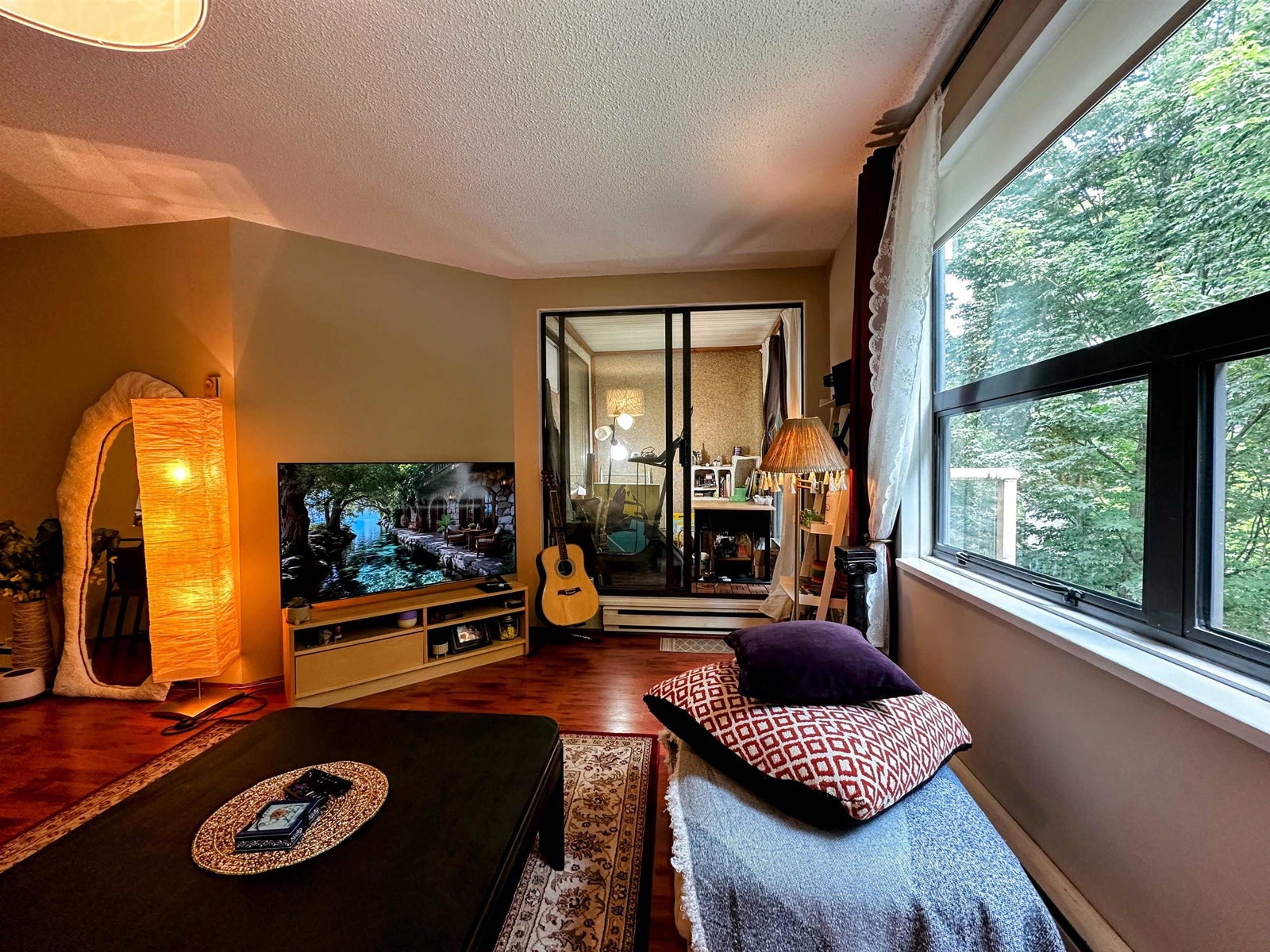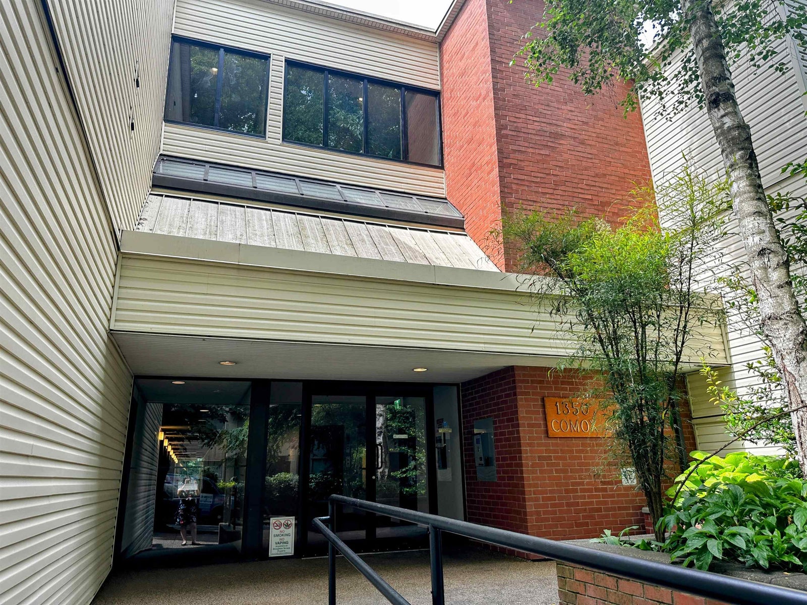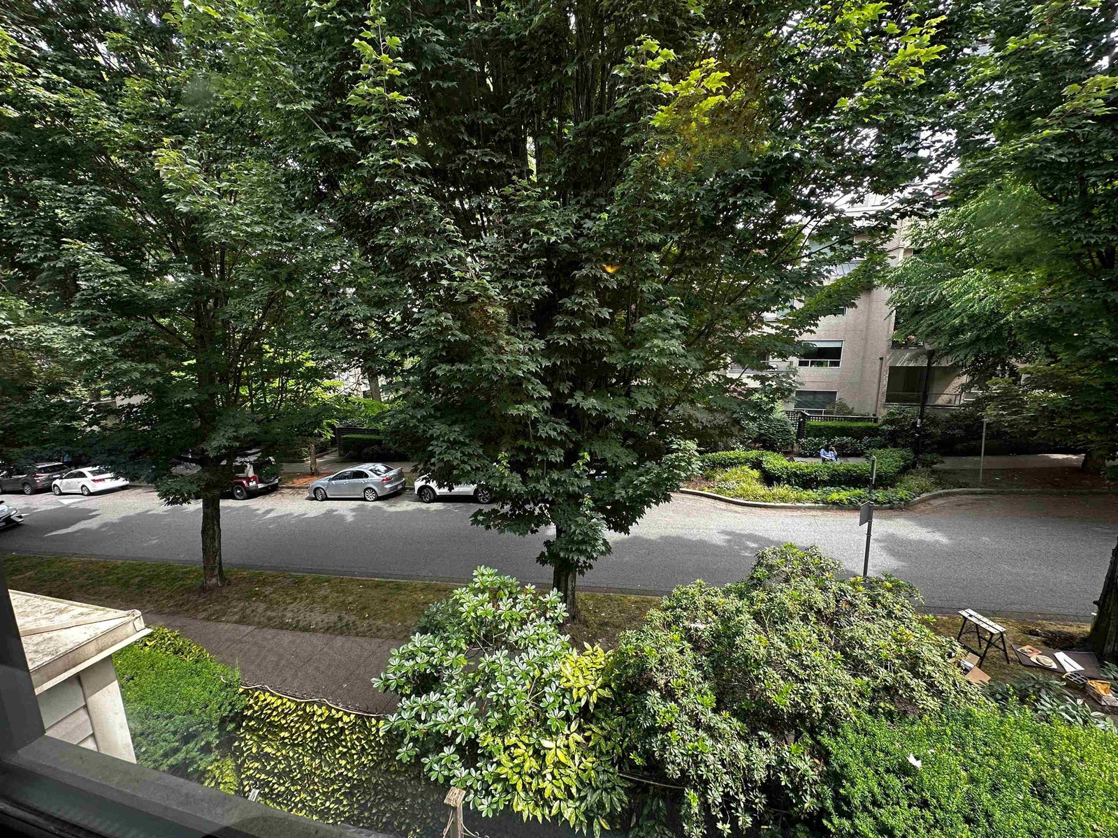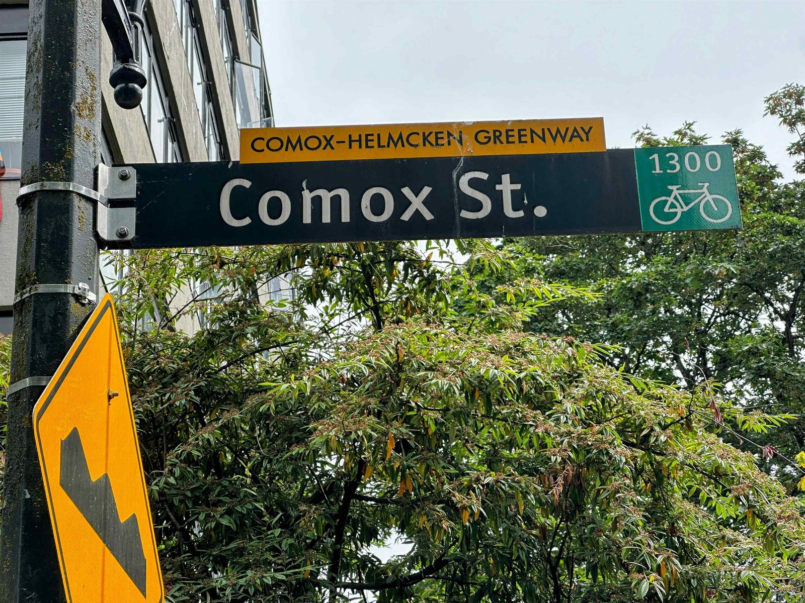 Welcome to this charming top-floor 1-bed home in the heart of the West End! Located on a quiet tree-lined street, this spacious suite features an updated kitchen with modern lighting, tasteful laminate flooring, and a contemporary bathroom with walk-in shower. The large bedroom includes a walk-in closet, and the enclosed balcony offers bonus living space with views over the peaceful Comox-Helmcken Greenway-an important east-west route from False Creek to Stanley Park for pedestrians and cyclists of all ages and abilities. Just steps from your door, enjoy a large common rooftop deck. Well-maintained building with secure parking, storage locker, and shared laundry. Close to Davie, Denman & English Bay.