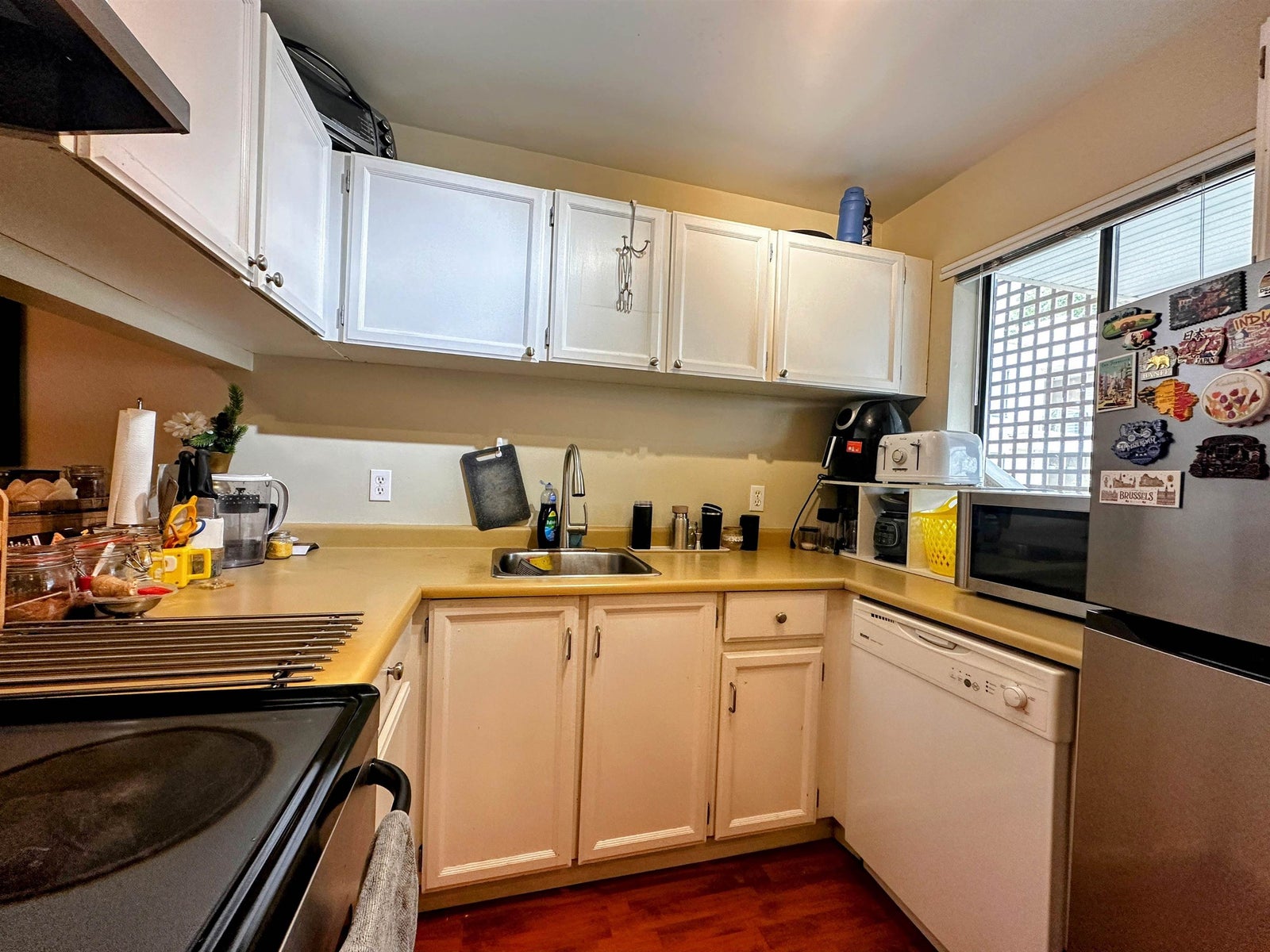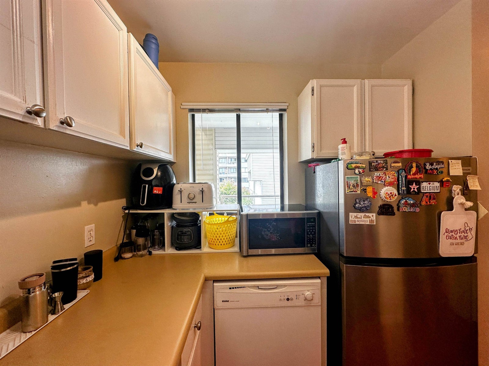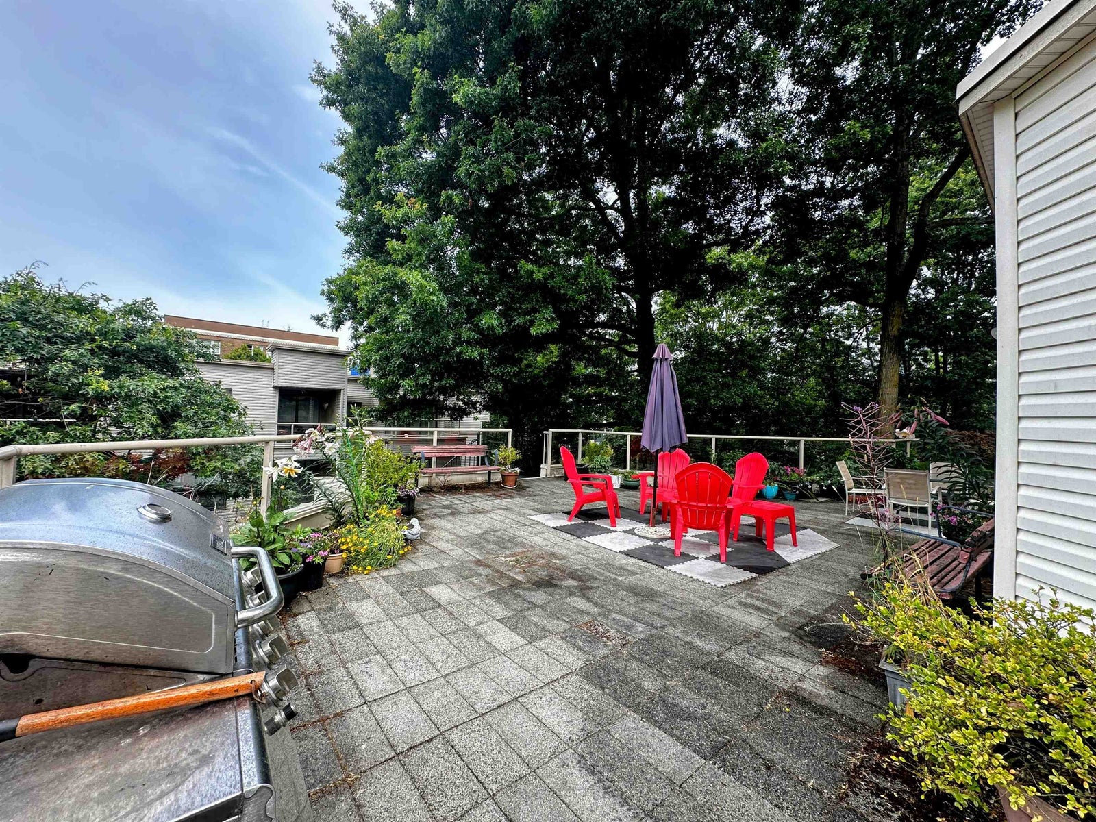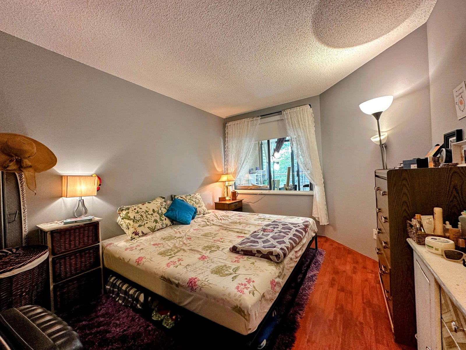 Welcome to this charming top-floor 1-bed home in the heart of the West End! Located on a quiet tree-lined street, this spacious suite features an updated kitchen with modern lighting, tasteful laminate flooring, and a contemporary bathroom with walk-in shower. The large bedroom includes a walk-in closet, and the enclosed balcony offers bonus living space with views over the peaceful Comox-Helmcken Greenway-an important east-west route from False Creek to Stanley Park for pedestrians and cyclists of all ages and abilities. Just steps from your door, enjoy a large common rooftop deck. Well-maintained building with secure parking, storage locker, and shared laundry. Close to Davie, Denman & English Bay.